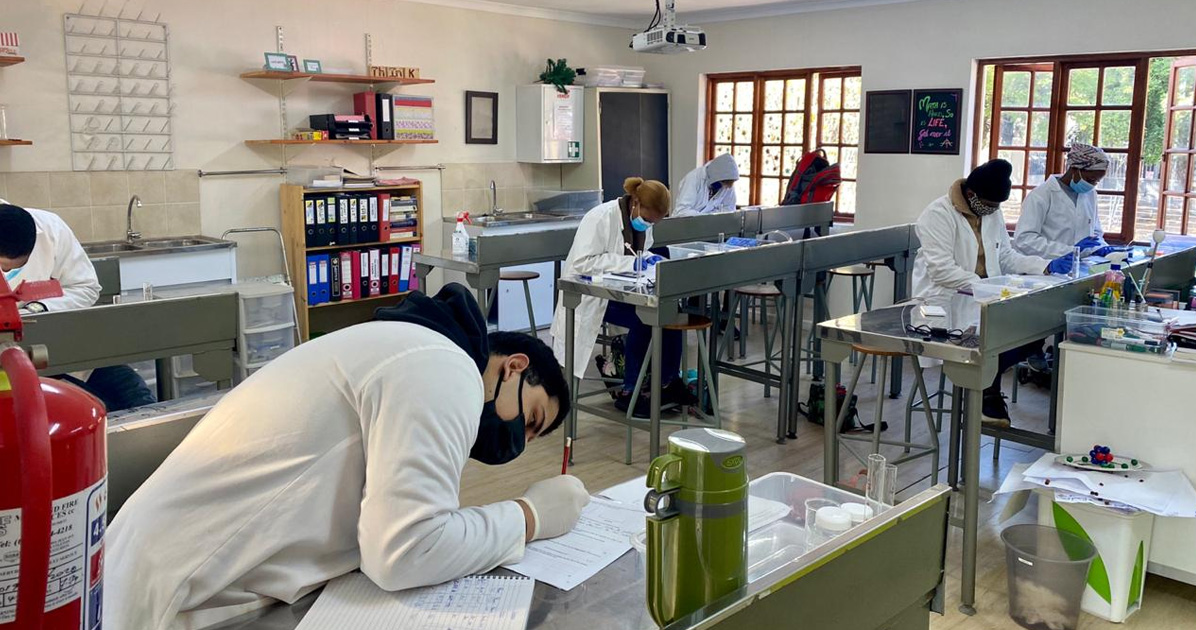 Only two days left before the end of Term 2! This week saw our learners do a final push to complete all of term 2’s work by doing on-campus PRACTICALS. It was a welcome break for those who switched from Virtual School to face-to-face – with masks, gloves and lab coats – interaction.
